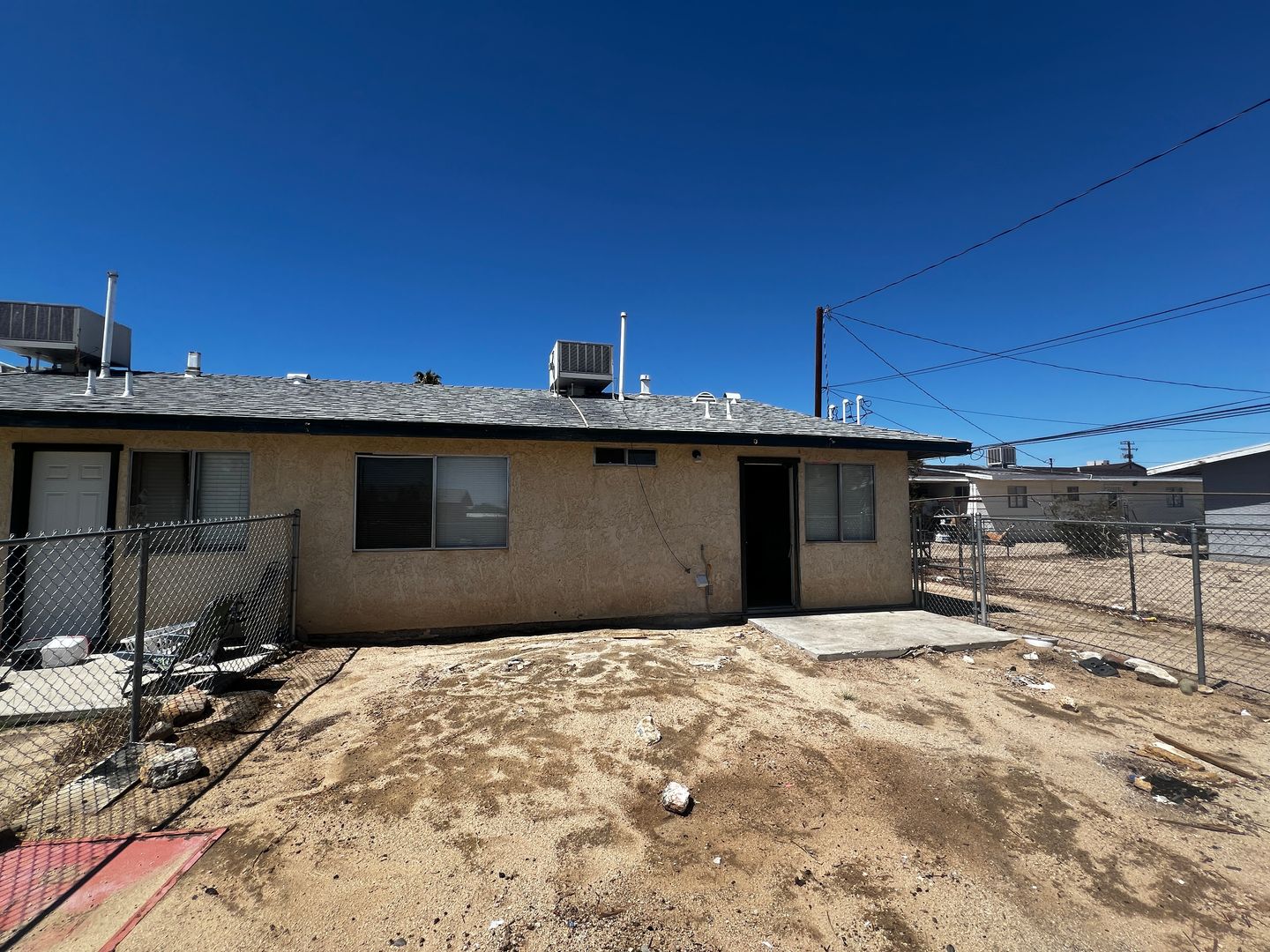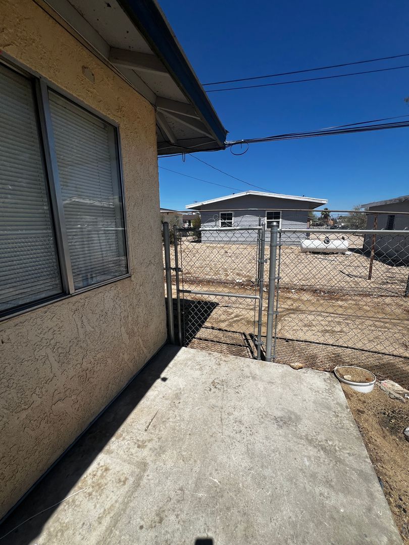 This well-maintained 2 bedroom, 1 bathroom apartment is conveniently located near downtown 29 Palms and public transportation. Inside, you’ll find fresh interior paint, new window blinds, and all-tile flooring throughout. The home is equipped with a new water heater, a new evaporative cooling system, and a stackable washer and dryer for added convenience. The kitchen includes a stainless steel oven, and the living space feels bright and functional. Outside, the property offers a newly fenced backyard. Water and trash service are included and paid by the owner, making this a great option for those looking for low-maintenance living in a central location.