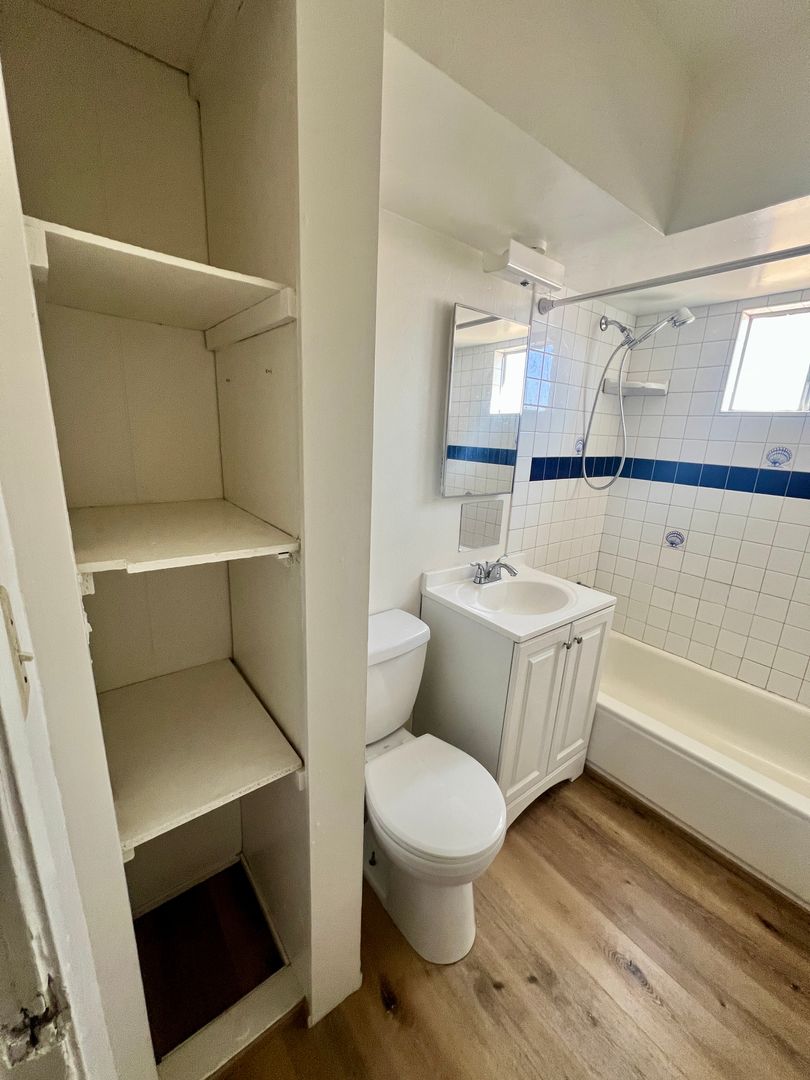 The kitchen comes equipped with a fridge and range, perfect for preparing meals. The bathroom includes a tub and shower enclosure, providing comfort and convenience.