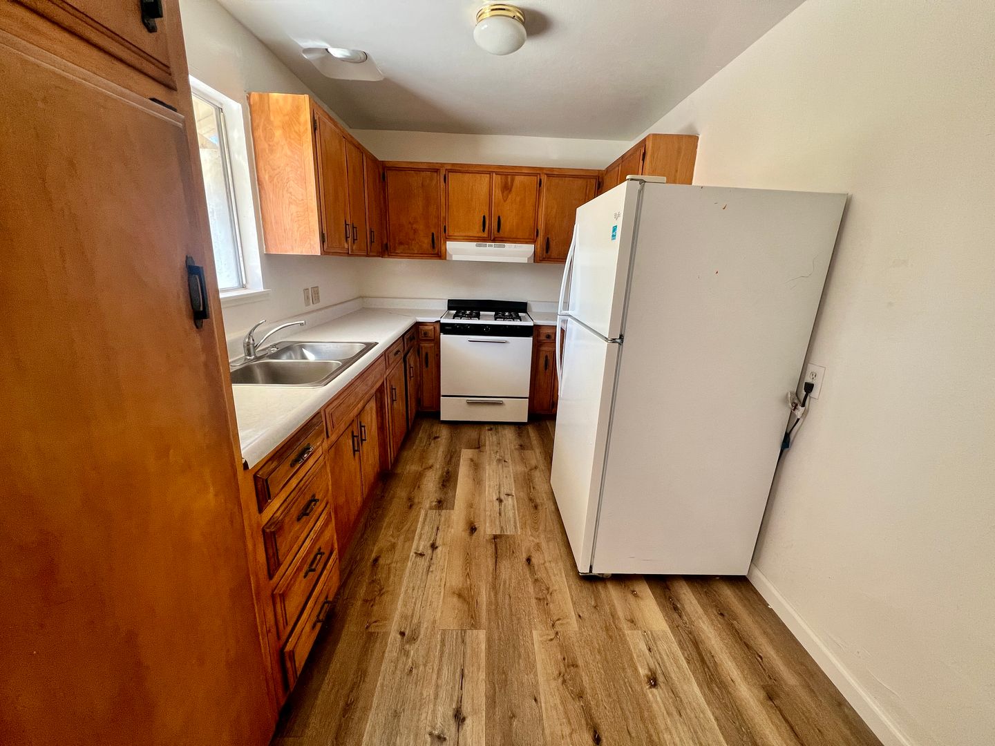 Welcome to 6380 Timothy—a charming 3-bedroom, 1-bathroom home located on the west end of 29 Palms! This cozy home features wood laminate flooring throughout, offering a modern and low-maintenance living space. The wrap-around driveway and fenced backyard provide convenience and privacy, while washer and gas dryer hookups add extra functionality.
